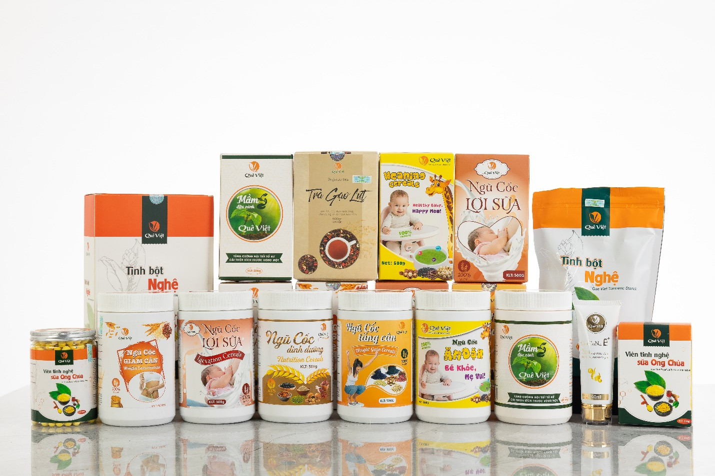 Tiếp nối thành công của sản phẩm tinh bột nghệ, Quê Việt đã liên tục đầu tư máy móc, công nhân viên để sản xuất thêm các sản phẩm ngũ cốc đa dạng, đáp ứng những nhu cầu ngày càng thiết thực của người dùng. Đồng thời Quê Việt cũng mời các chuyên gia dinh dưỡng hàng đầu để nghiên cứu thành phần, cân đối tỷ lệ dinh dưỡng nhằm mang đến cho người dùng những sản phẩm hỗ trợ chăm sóc sức khỏe chất lượng.
