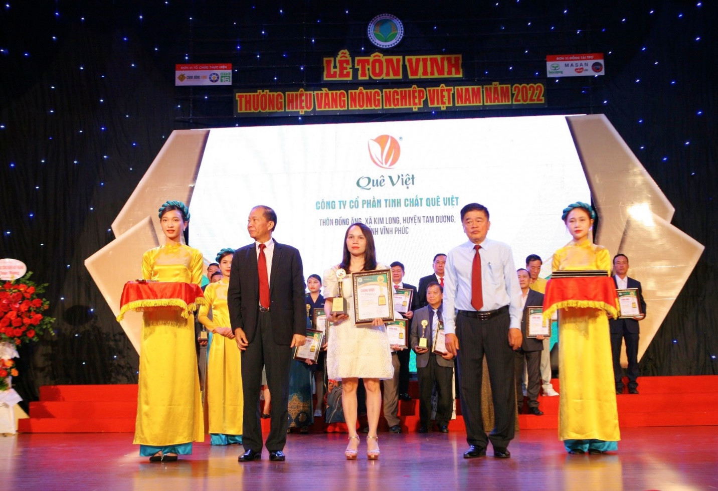 Với những cố gắng nỗ lực không ngừng của tập thể lãnh đạo và công nhân viên, Quê Việt đã nhận được nhiều những giải thưởng danh giá. Năm 2018 đạt danh hiệu Top 50 thương hiệu xuất sắc 3 miền; Năm 2019 đạt danh hiệu Top 50 thương hiệu mạnh ASEAN’ Top 10 thương hiệu tin cậy, sản chất lượng, dịch vụ tận tâm năm 2020. Đặc biệt trong năm 2022, có 2 sản phẩm Trà hoa cúc gạo lứt và viên tinh nghệ sữa ong chúa của Quê Việt được Tổng hội NN&PTNT Việt Nam vinh danh “Thương hiệu Vàng nông nghiệp Việt Nam năm 2022”.