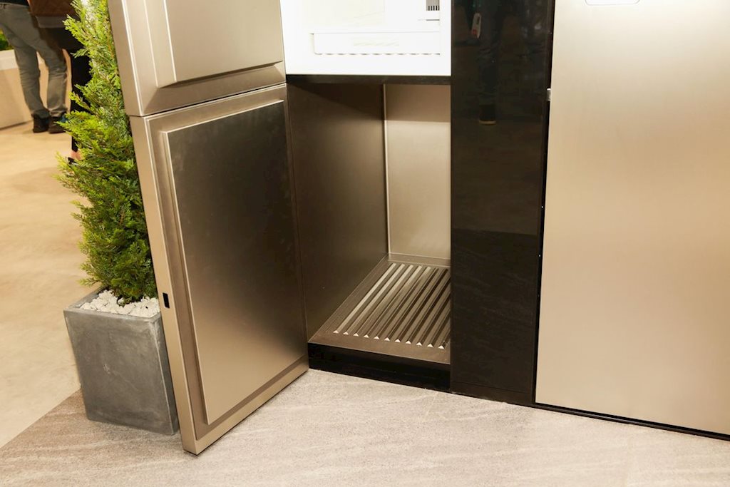 Nó không phải cửa ra vào thông thường mà chính là sản phẩm tới từ tương lai. Sau khi quét gương mặt và lòng bàn tay để nhận diện, nó sẽ tự mở ra. Nó còn có hai ngăn dành cho bưu phẩm và đồ dễ hư hỏng. Với những ai gọi giao đồ ăn tận nơi nhưng lại về muộn, ngăn tủ lạnh này sẽ khiến họ bớt lo lắng hơn. Bạn hoàn toàn có thể mở ngăn tủ từ trong nhà mà không phải ra ngoài để lấy đồ như các tủ khóa thông thường.