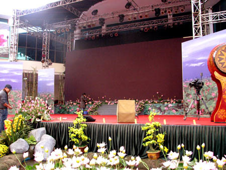 | Trong đêm 28/1, có tới 1000 bông sen hồng được mang về từ Tp Hồ Chí Minh và Đồng Tháp Mười. |