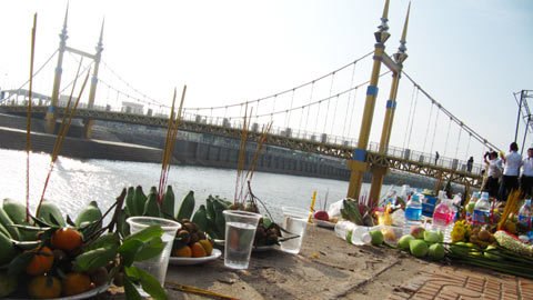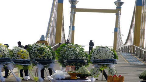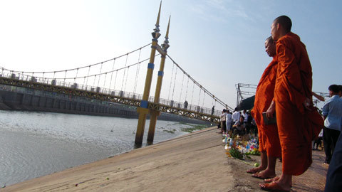 | Bên cầu Koh Pich, ai cũng lặng lẽ đứng nhìn dòng sông, nhìn cây cầu của lễ hội đã biến thành cầu ‘nuốt người”, thảm hoạ khủng khiếp với người dân. Đã có ít nhất 456 người thiệt mạng trên cây cầu treo này. |
