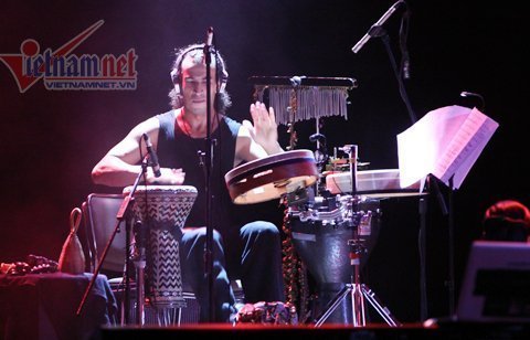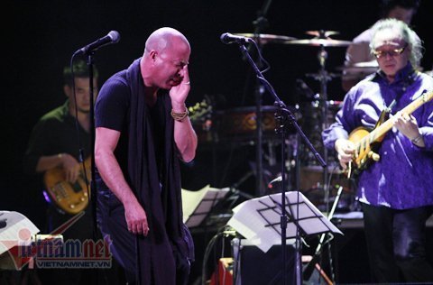 Nhạc sĩ Nguyên Lê (áo tím) mang trong mình dòng máu Việt nhưng lại không thể giao tiếp một cách thành thạo bằng tiếng Việt bởi vậy trong phần giao lưu chia sẻ cảm xúc ông phải nhờ cậy vào một phiên dịch viên.