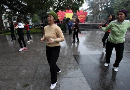 | Tham gia cùng nhóm nhảy không ít cụ đã ngót nghét 80 cái xuân xanh. |