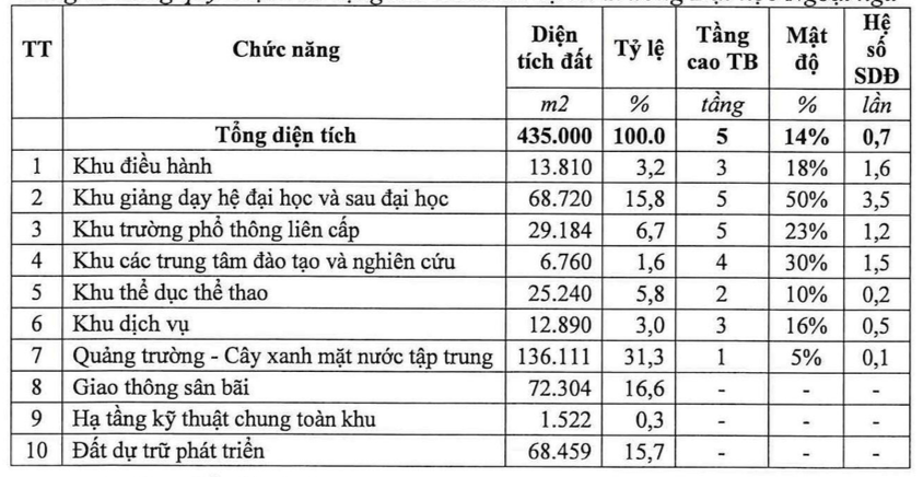 Quy mô diện tích khu vực dự án quy hoạch khoảng: 43,5 ha, quy mô dự kiến 17.000 học viên và 1.734 cán bộ.