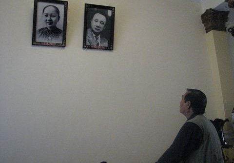 Ba Đức bên di ảnh của vợ chồng Công tử Bạc Liêu |