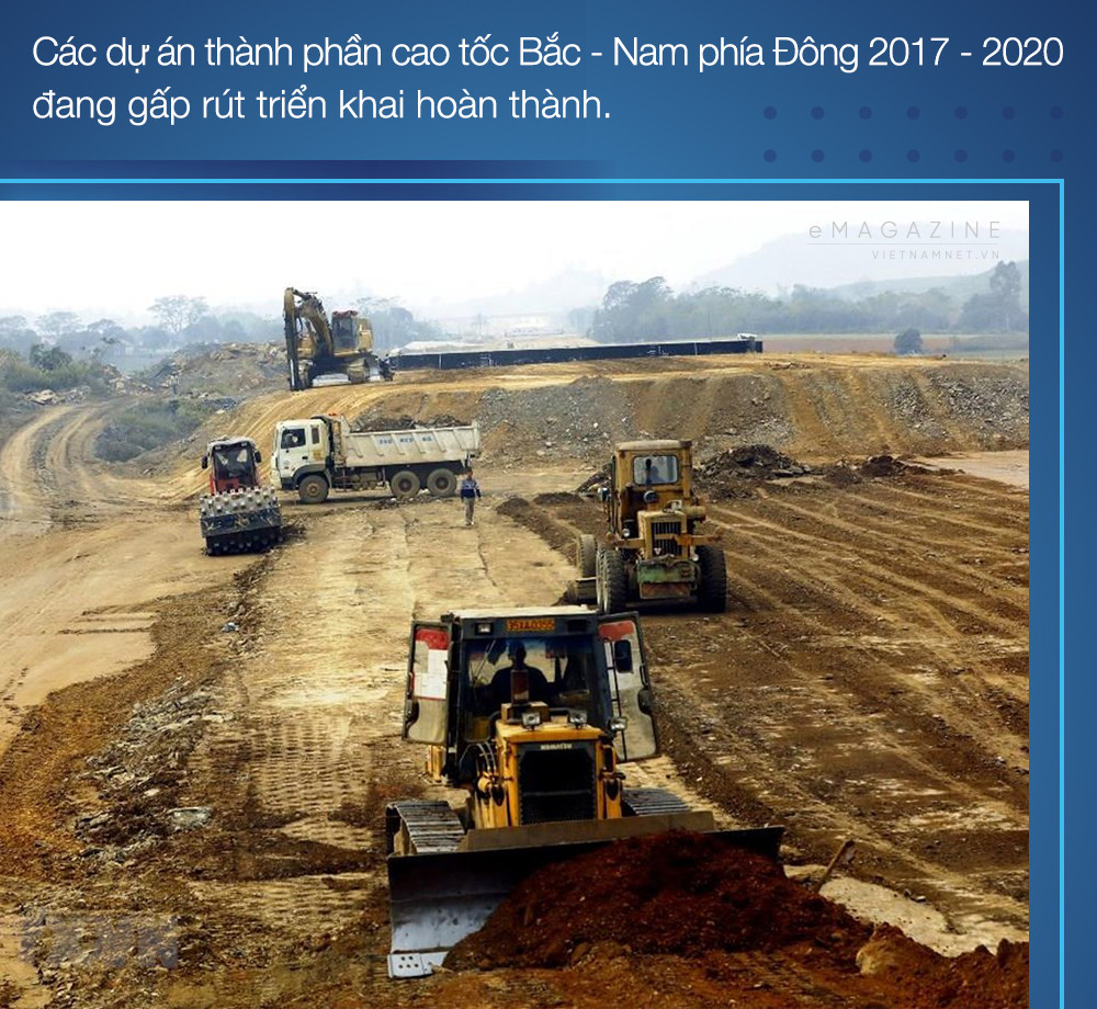Đối với 11 dự án thành phần cao tốc Bắc - Nam phía Đông giai đoạn 2017 -2020 (dài 654km), hiện tại dự án Cao Bồ - Mai Sơn dài 15,2km đã hoàn thành đưa vào khai thác, 10 dự án còn lại vẫn đang được Chính phủ chỉ đạo quyết liệt các bộ ngành, địa phương sớm hoàn thành đưa vào khai thác. Trong đó đặt mục tiêu phấn đấu đến cuối năm nay hoàn thành 4 dự án dài 360km (Mai Sơn - quốc lộ 45; Cam Lộ - La Sơn; Vĩnh Hảo - Phan Thiết; Phan Thiết - Dầu Giây), các dự án còn lại sẽ hoàn thành trong năm 2023.