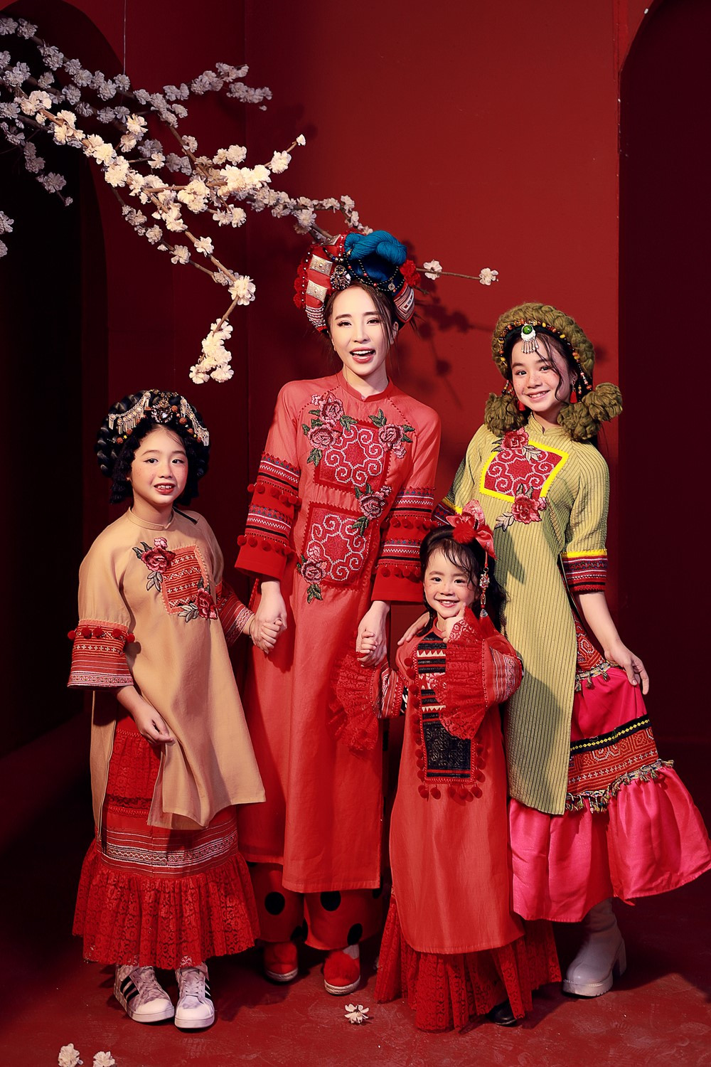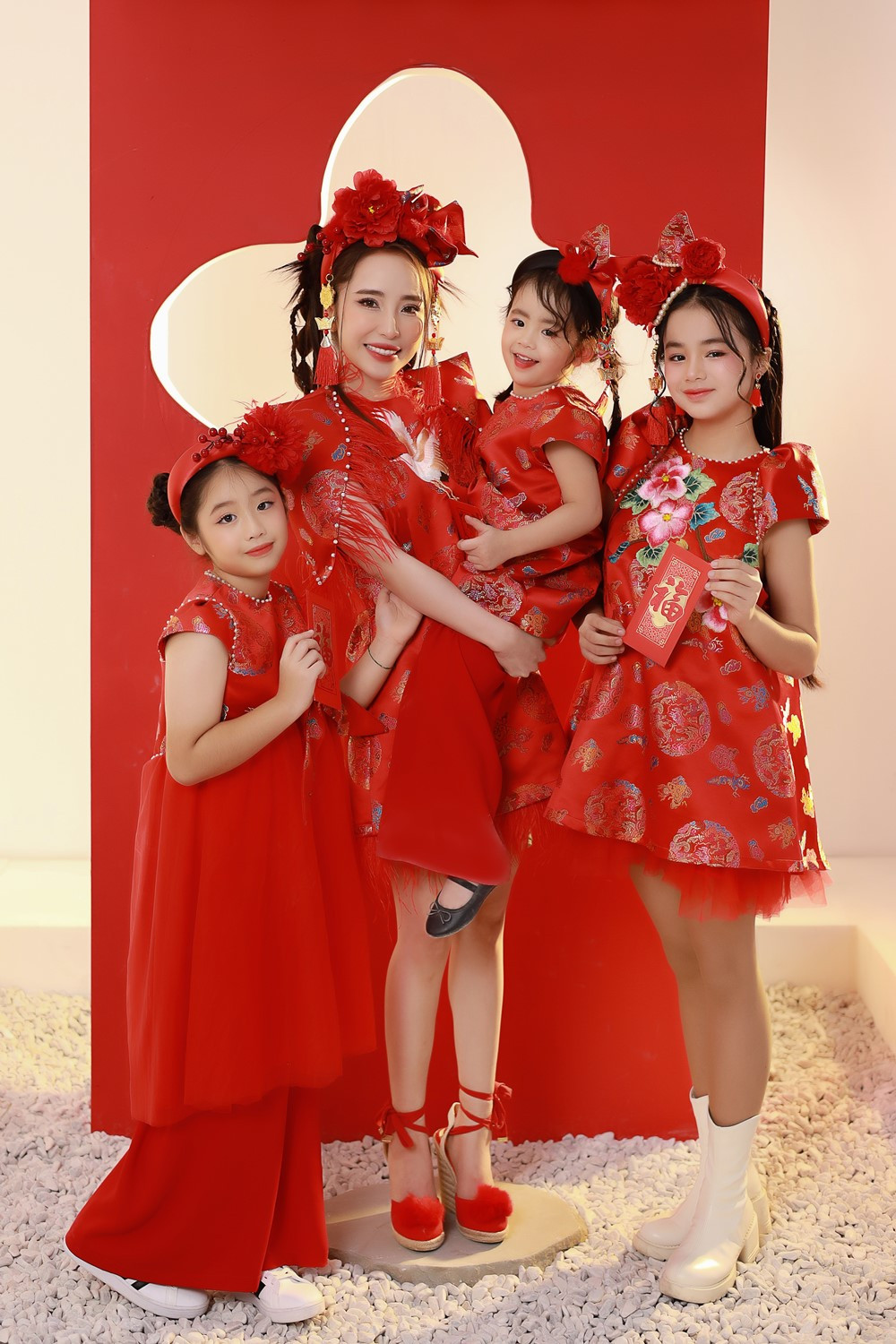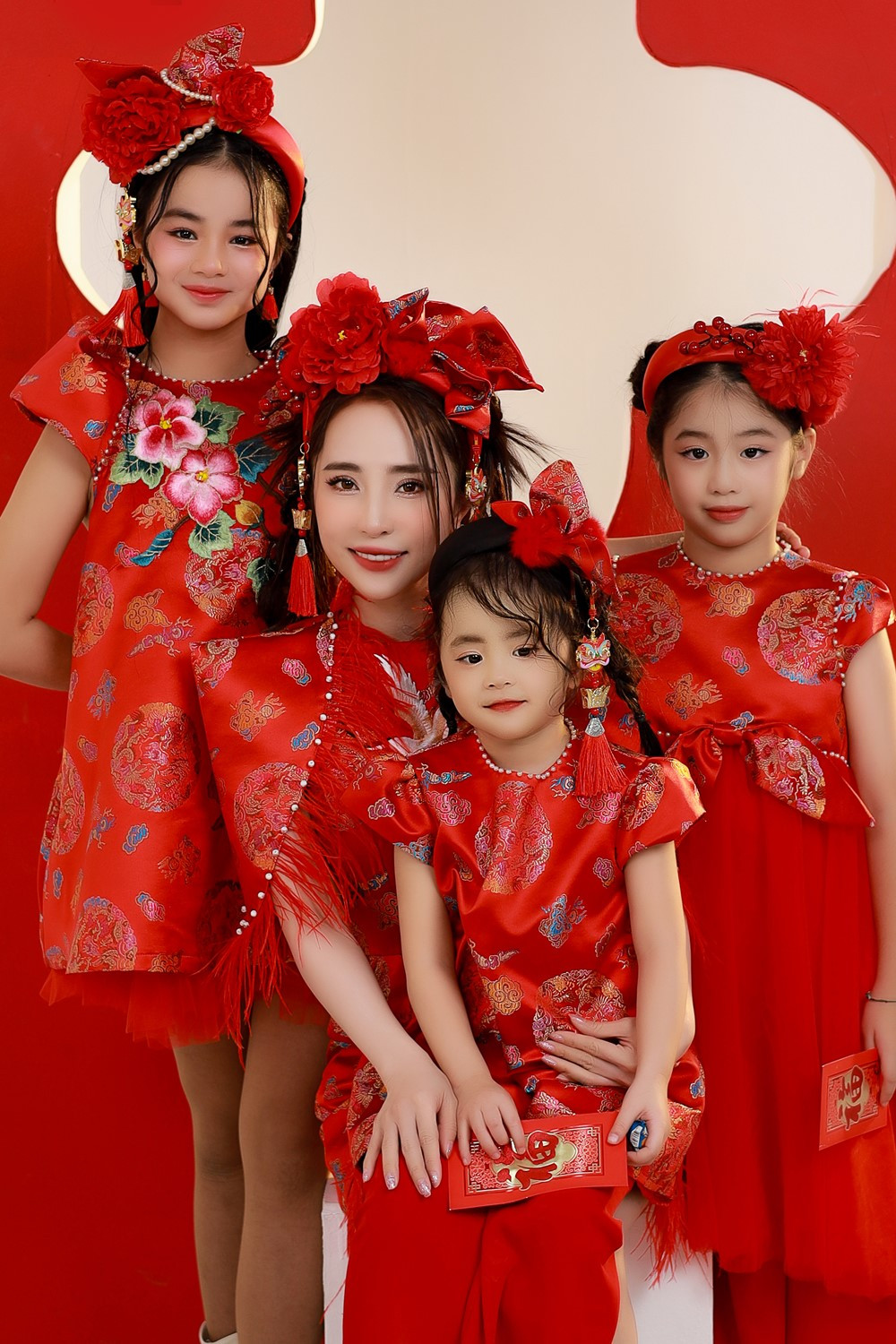 Nữ diễn viên Quỳnh Nga cùng các người mẫu nhí Maika Ngọc Khánh, Lan Khuê, MyMy diện những thiết kế mới trong bộ sưu tập áo dài Tết có tên “Tết sum vầy” của nhà thiết kế Cao Minh Tiến.Bộ sưu tập áo dài Tết lần này được NTK Cao Minh Tiến sử dụng tone màu rực rỡ như đỏ và vàng - những gam màu nổi bật đậm sắc Tết, nhằm truyền tải sự hứng khởi đầu xuân năm mới.Với chủ đề “Tết sum vầy”, các thiết kế cũng được hòa trộn giữa áo dài truyền thống, chất liệu truyền thống và những hoạ tiết sắc màu Tây Bắc sinh động, phong phú.Bộ ảnh cũng đem đến một tạo hình mới lạ cho Quỳnh Nga. Trong các thiết kế áo dài rực rỡ chất liệu gấm, lụa, cô nổi bật khi kết hợp với mấn đội hoạ tiết hoa lá, tươi vui, rạng ngời như nàng tiên xuân.Nói về Tết năm nay, Quỳnh Nga chia sẻ, cô vẫn đón Tết Quý Mão theo truyền thống là dành thời gian cho gia đình và tận hưởng cái Tết Hà Nội. Với Quỳnh Nga, Tết Hà Nội luôn có một không khí, phong vị rất riêng mà cô luôn luôn yêu thích, luôn muốn được tận hưởng trọn vẹn. Sau đó, cô mới lên kế hoạch đi du lịch đón năm mới nơi xa.“Tôi yêu Tết Hà Nội, yêu sự thanh bình, yên ả của những ngày mùng 1,2 Tết, yêu khung cảnh gia đình sum vầy, quây quần cùng bạn bè. Đó chính là lý do, Tết đến tôi thường thích ở Hà Nội nhất”- Quỳnh Nga chia sẻ. Việt Anh, Quỳnh Nga, MC Ngọc Anh tin Việt Nam đoạt cúp AFF Cup
