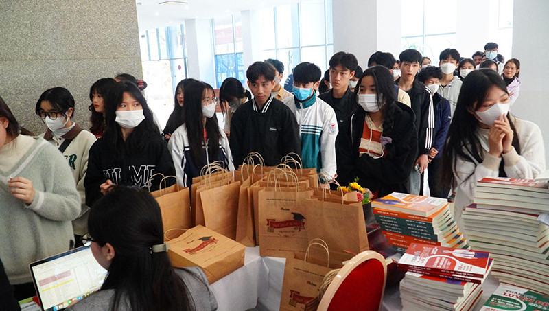 Với nhiều ưu điểm, bộ sách Thần tốc luyện đề 2023 thu hút đông đảo học sinh xếp hàng đăng ký tại sự kiện.