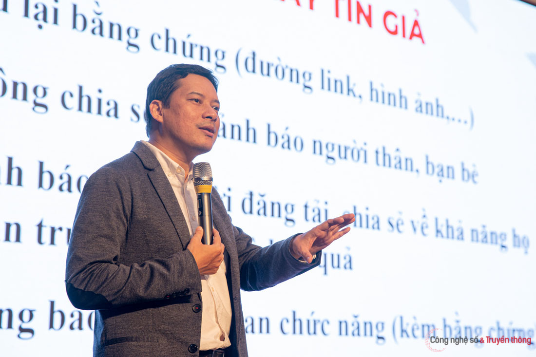 “Tham gia vào không gian số, một việc quan trọng là cần trang bị cho người dùng công cụ để nâng cao sức đề kháng, nhận biết được tin giả để không chia sẻ, phát tán nó. Cẩm nang cũng giúp nhận biết trong việc phát tán tin giả, đâu là hành vi cố tình, được tổ chức với dụng ý xấu, trục lợi từ việc đó”, Thứ trưởng chia sẻ.