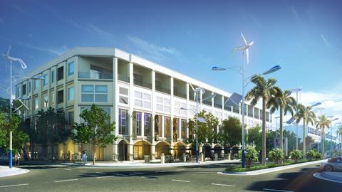 chiếu sáng bằng điện gió và mặt trời. Cùng với 30% diện tích cây xanh và mặt