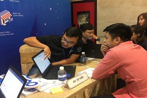 Nhân viên Công ty cổ phần Công nghệ Sapo hướng dẫn khách hàng trải nghiệm giải pháp quản lý bán hàng |