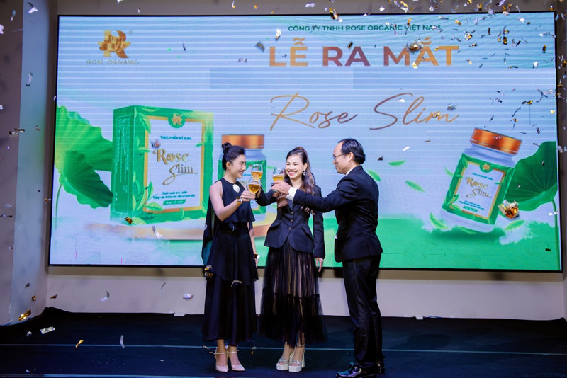 Tại sự kiện, đại diện công ty đã ra mắt thực phẩm bổ sung Rose Slim. Theo giới thiệu, ngoài thành phần thảo mộc thiên nhiên, Rose Slim còn có collagen peptide, vitamin E, sản phẩm hỗ trợ thúc đẩy trao đổi chất, giúp thanh lọc cơ thể, giảm cảm giác thèm ăn, cung cấp vitamin và khoáng chất cho cơ thể.