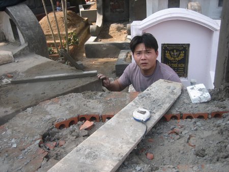 Vừa xây vừa trát là “kỹ nghệ” và cũng là yêu cầu của những thợ xây mộ.