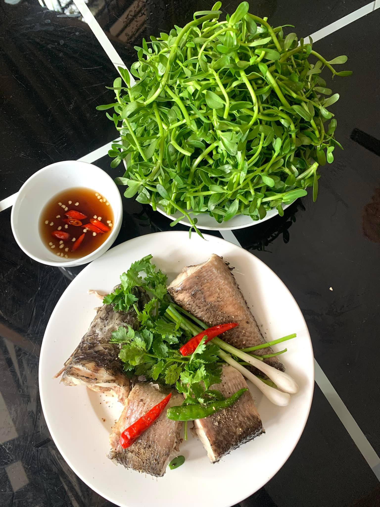 Nước luộc cá thì cho gạo đã vo vào để nấu cháo.