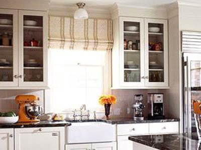 Đối với bếp, các loại rèm nên dùng thường phải đáp ứng nhu cầu gọn nhẹ, ít chi tiết, chống bám dầu mỡ, mùi thức ăn. Bởi vậy có thể chọn kiểu mành sáo hoặc rèm roman với màu trung tính, ghi sáng.