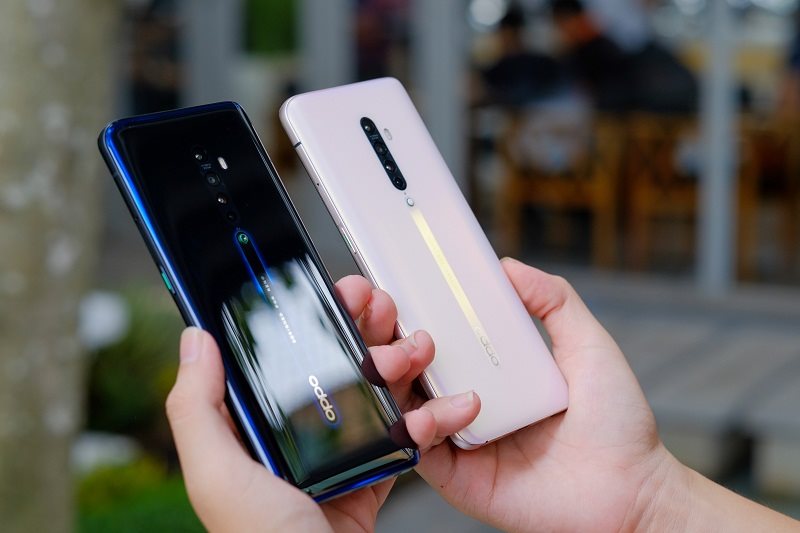 Khác biệt dễ nhận thấy nhất giữa Reno2 series và Reno đời đầu là ở tuỳ chọn màu sắc, trong khi OPPO Reno2 có tuỳ chọn Đen Lân Tinh và Hồng San Hô, thì Reno2 F sở hữu màu Trắng Hoa Tuyết và Xanh Biển Hồ.