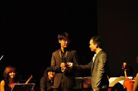 - Có mặt tại bữa tiệc âm nhạc mừng sinh nhật tròn 1 tuổi của dàn nhạc Rhapsody Philharmonic, nhạc sĩ Huy Tuấn tỏ rõ thái độ thích thú và chăm chú lắng nghe phần biểu diễn của các nghệ sĩ trẻ măng trong dàn nhạc.
