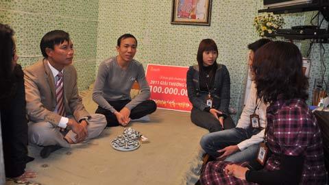 Hiền đã đến tận nơi để thăm hỏi và trao tận tay số tiền trúng thưởng cho anh
