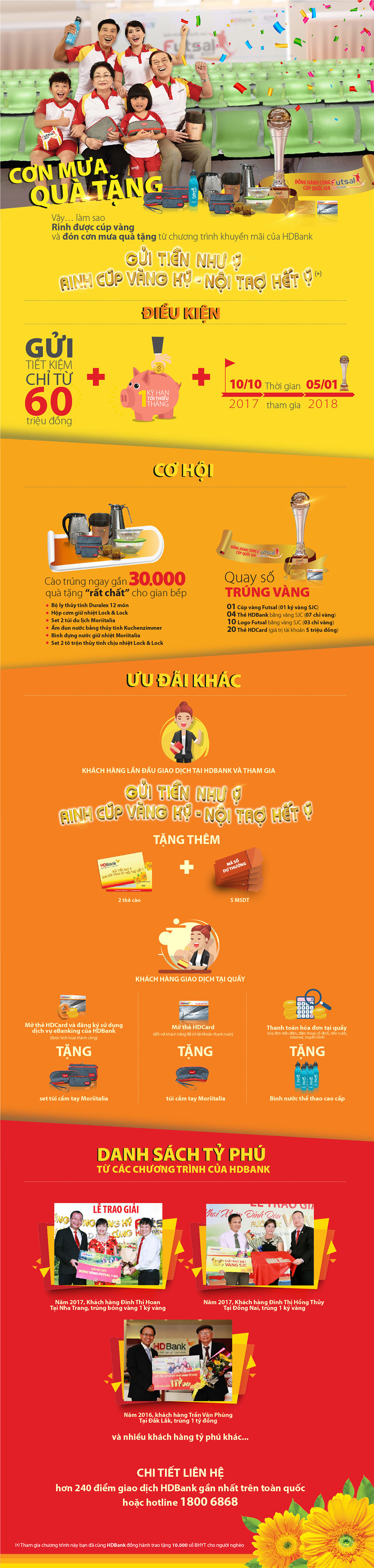 Cuối năm 2017, cơn mưa quà tặng từ HDBank với giải đặc biệt là Cúp Futsal 01 ký vàng SJC đang tìm chủ nhân.