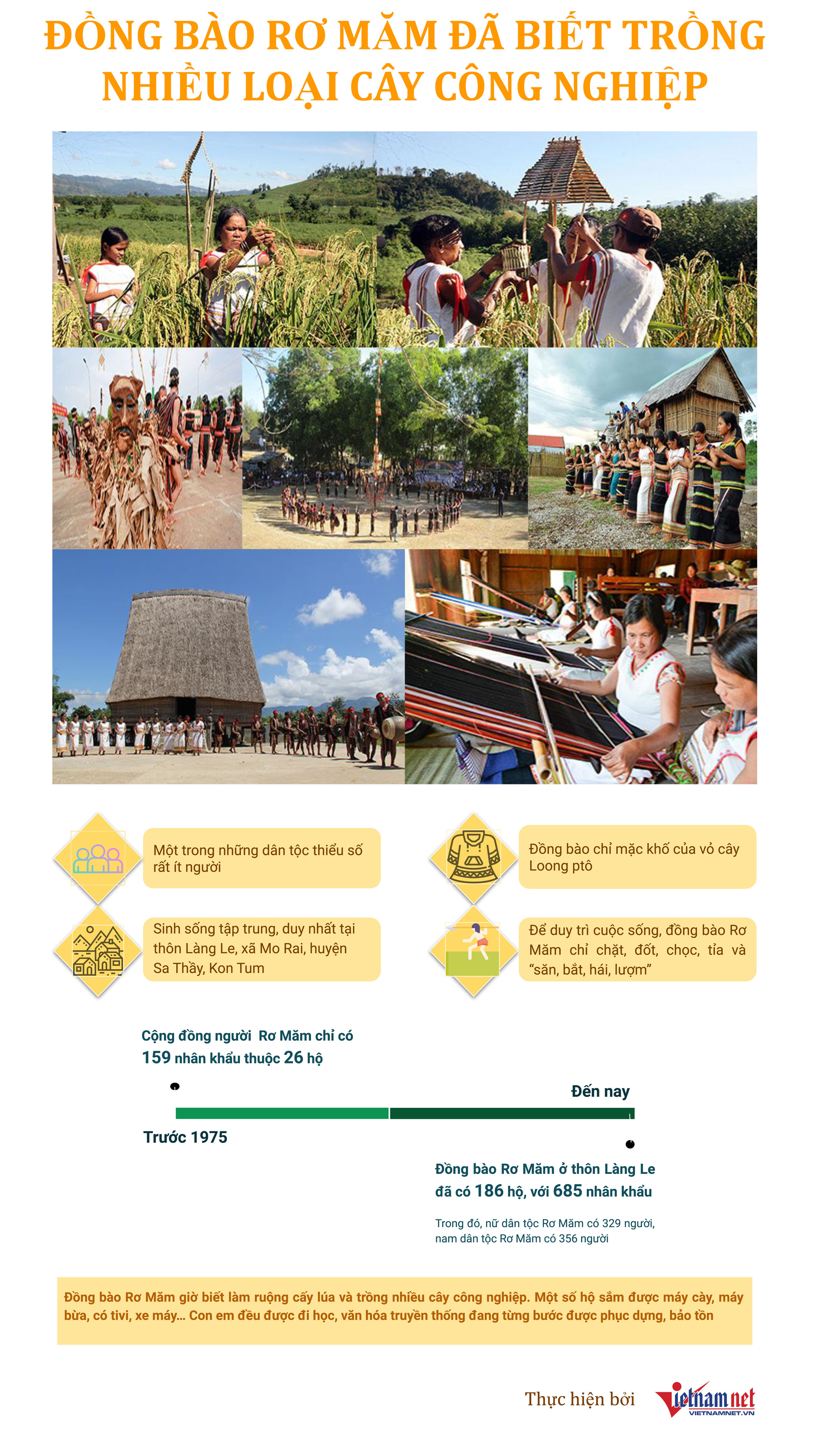 Rơ Măm là một trong 16 dân tộc rất ít người, sống chủ yếu ở làng Le, Kon Tum. Trước đây, gần như 100% đồng bào Rơ Măm trồng trọt theo quy trình sản xuất thô sơ phát, đốt, chọc, trỉa và các hoạt động săn bắt, hái lượm.