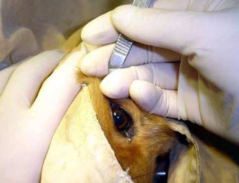 | Một con chó đang được phẫu thuật thẩm mỹ tạo mắt 2 mí ở một bệnh viện thú y tại Tô Châu, Trung Quốc ngày 26/1/2006. Ảnh: TopNews. |