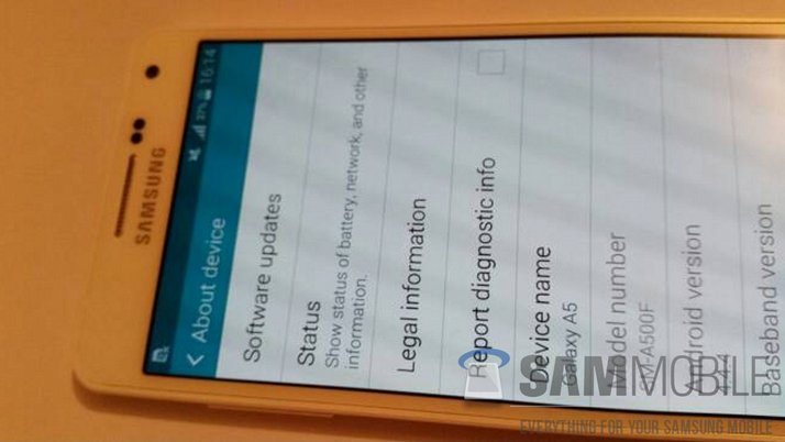 Theo Sam Mobile, một trong các điện thoại Samsung kim loại sắp ra mắt là Galaxy A5. Blog này có được một số hình ảnh về thiết bị này, cho thấy các khung kim loại và mặt sau nhẵn nhụi. Sam Mobile cho biết Samsung đã loại bỏ thiết kế vỏ nhựa từng xuất hiện trên Galaxy S5 và các điện thoại đời cũ. Vật liệu mới không hoàn toàn là kim loại nhưng theo tác giả trên Sam Mobile, nó mang lại cảm giác “lạnh” khi cầm trên tay.