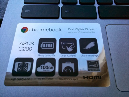 Asus là một trong số các công ty mới gia nhập thị trường này và sản phẩm đầu tiên của họ là chiếc hộp Chromebox dùng làm máy tính để bàn. Chúng ta không có nhiều chi tiết về cấu hình của C200, nhưng dựa theo các nhãn dán trên máy thì thiết bị này sẽ dùng vi xử lí Intel, thời lượng pin dài "cả ngày", touchpad rộng rãi, "siêu mỏng và nhẹ", âm thanh chất lượng cao. Cũng như các máy Chromebook khác, khách hàng mua C200 sẽ được tặng 100GB lưu trữ trên Google Drive trong vòng 2 năm cùng với một số Chrome Apps miễn phí. Chưa rõ bao giờ thì Asus sẽ chính thức ra mắt C200.