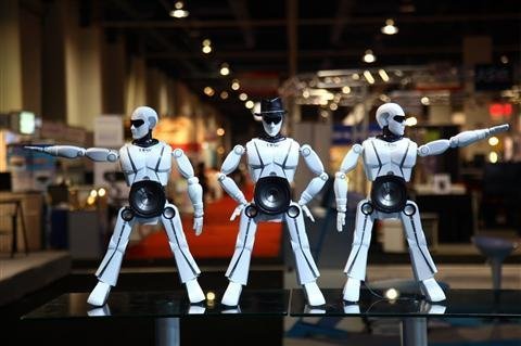 | Rất nhiều khách tham quan triển lãm CES 2013 tò mò với sản phẩm robot biết nhảy theo động tác của người tại gian hàng Tosy. |