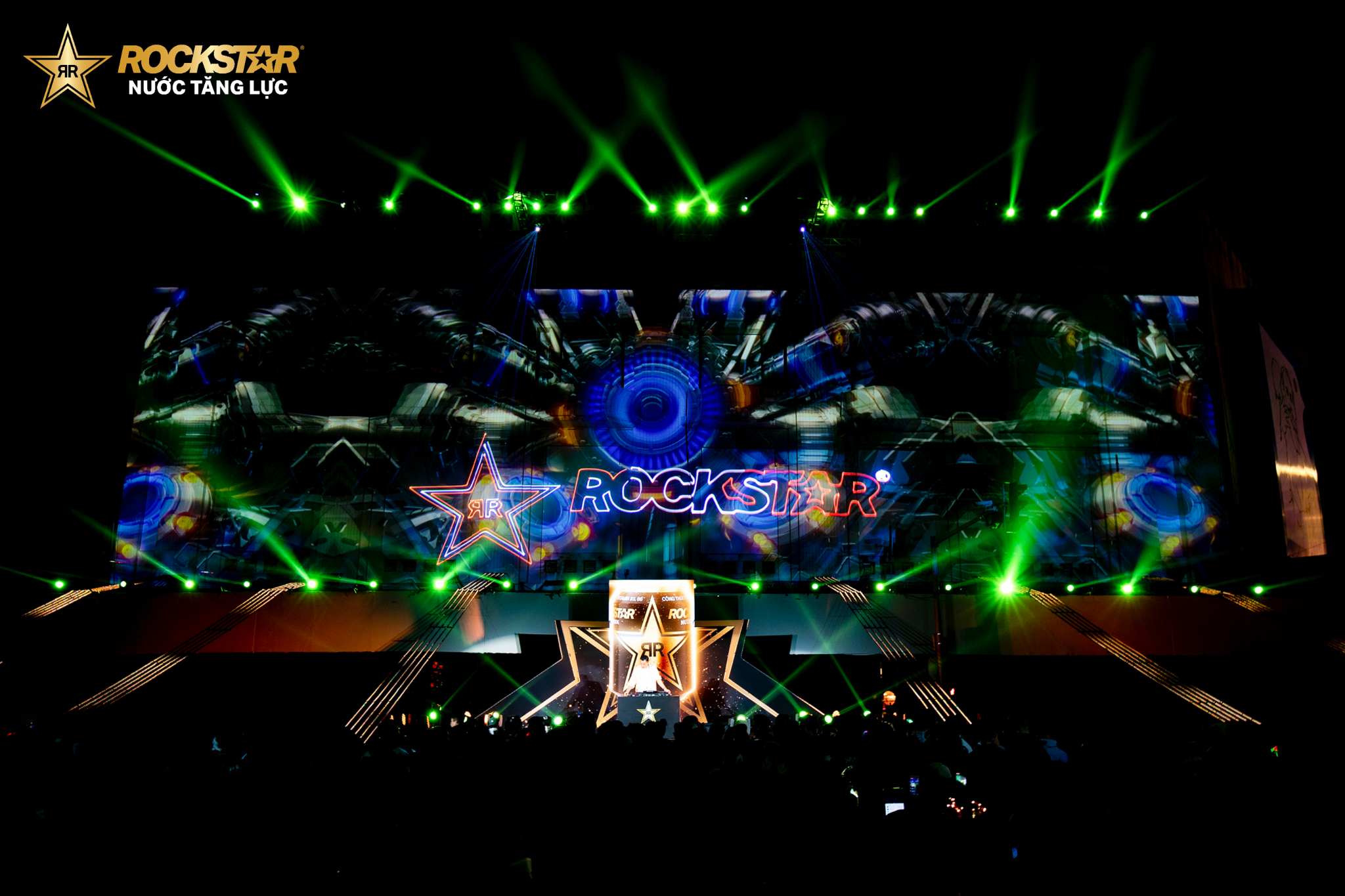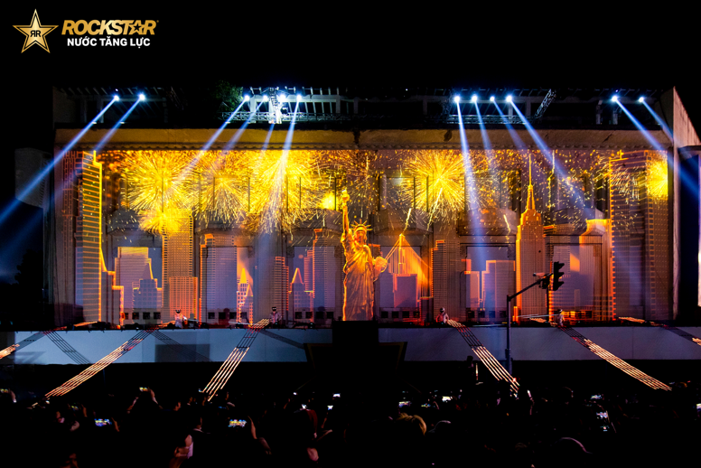 Buổi trình diễn mở màn bằng câu chuyện về hành trình của thương hiệu nước tăng lực Rockstar từ Mỹ về Việt Nam, kết hợp với màn trình diễn trên không Vertical dance thu hút mọi ánh nhìn.
