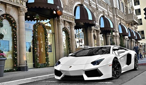 Lamborghini Aventador màu trắng trước cửa hàng trang sức Avakian.