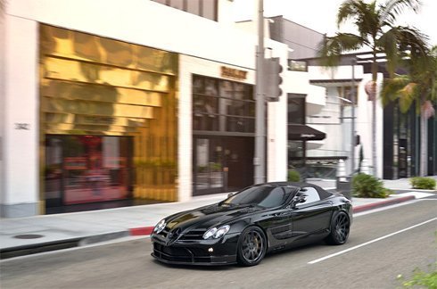 Mercedes SLR McLaren Roadster chạy qua Rodeo Drive trong một buổi chiều yên bình.