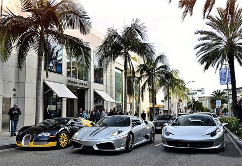 Khu mua sắm hàng đầu ở California, Mỹ và nằm tại khu Beverly Hills nổi tiếng, Rodeo Drive là nơi thường xuyên gặp mặt của những mẫu xe đỉnh cao khi hộ tống chủ nhân tới đây tiêu tiền.