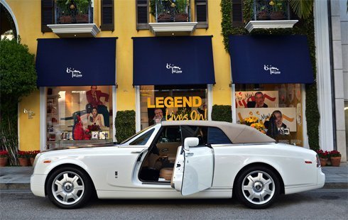 Mercedes SLR McLaren Roadster trước cửa hàng Bijan, thương hiệu trang phục và nước hoa cho nam giới. Tại triển lãm ôtô Los Angeles 2010, nhà thiết kế nổi tiếng người Iran Bijan Pakzad đã bắt tay cộng tác với hãng siêu sang Anh quốc thiết kế một số mẫu Phantom Drophead Coupe đặc biệt có tên "Bijan Edition".