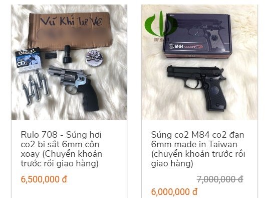 Cụ thể hơn, một khẩu súng hơi Rulo côn xoay bắn đạn bi có giá 6,5 triệu đồng, súng CO2 M84 2 đạn giá 6 triệu đồng. Kiếm Nhật có giá từ 1,5 – 2,5 triệu đồng tùy loại.