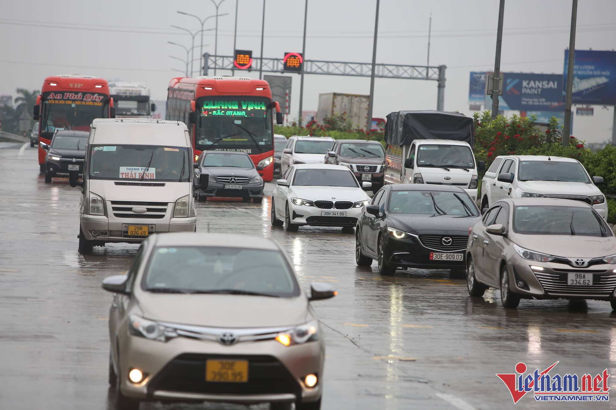 9h, tại Trạm thu phí cao tốc Pháp Vân- Cầu Giẽ, do lượng phương tiện tăng nên các xe phải di chuyển chậm ở đoạn đường trước trạm, tuy nhiên tình trạng ùn tắc không xảy ra.