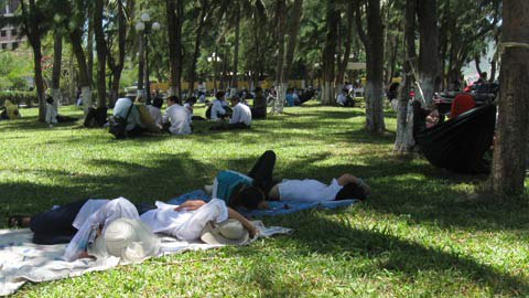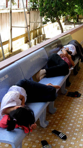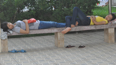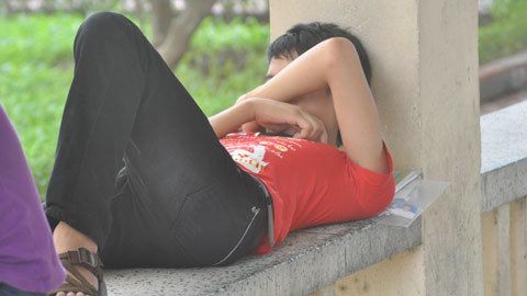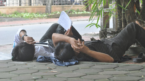Dưới nắng gắt “sĩ tử” vẫn ngon giấc