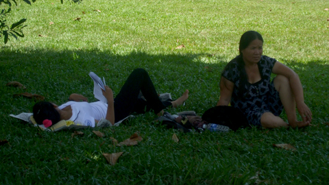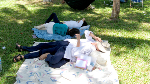 đều tranh thủ nằm, ngồi nghỉ lấy sức cho buổi thi chiều.