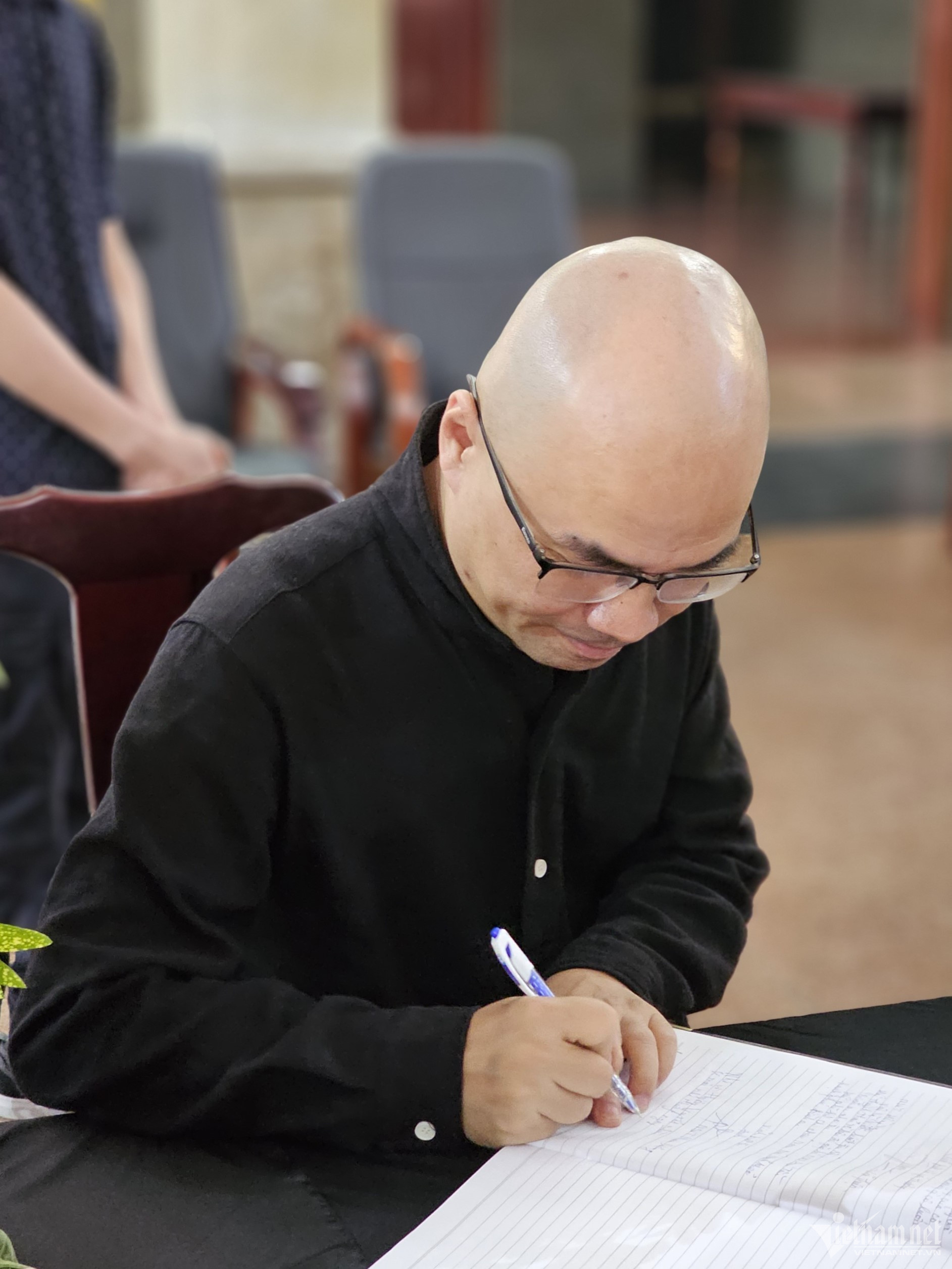 Nhiều người viếng rơi nước mắt khi đọc thiệp của em Chí Nam gửi mẹ và dòng viết của những nghệ sĩ, người thân của Hồng Vy trong sổ tang.