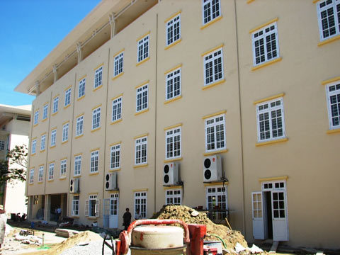 | Giảng đường D1, nơi xảy ra vụ tai nạn lao động thương tâm. Ảnh: Trường Hà. |