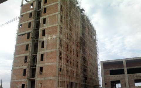 | Công trình cao tấng nhưng lại được bố trí hệ thống giàn giáo bằng tre, nguy hiểm đến tính mạng của người lao động và đã xảy ra hậu quả chết người. |