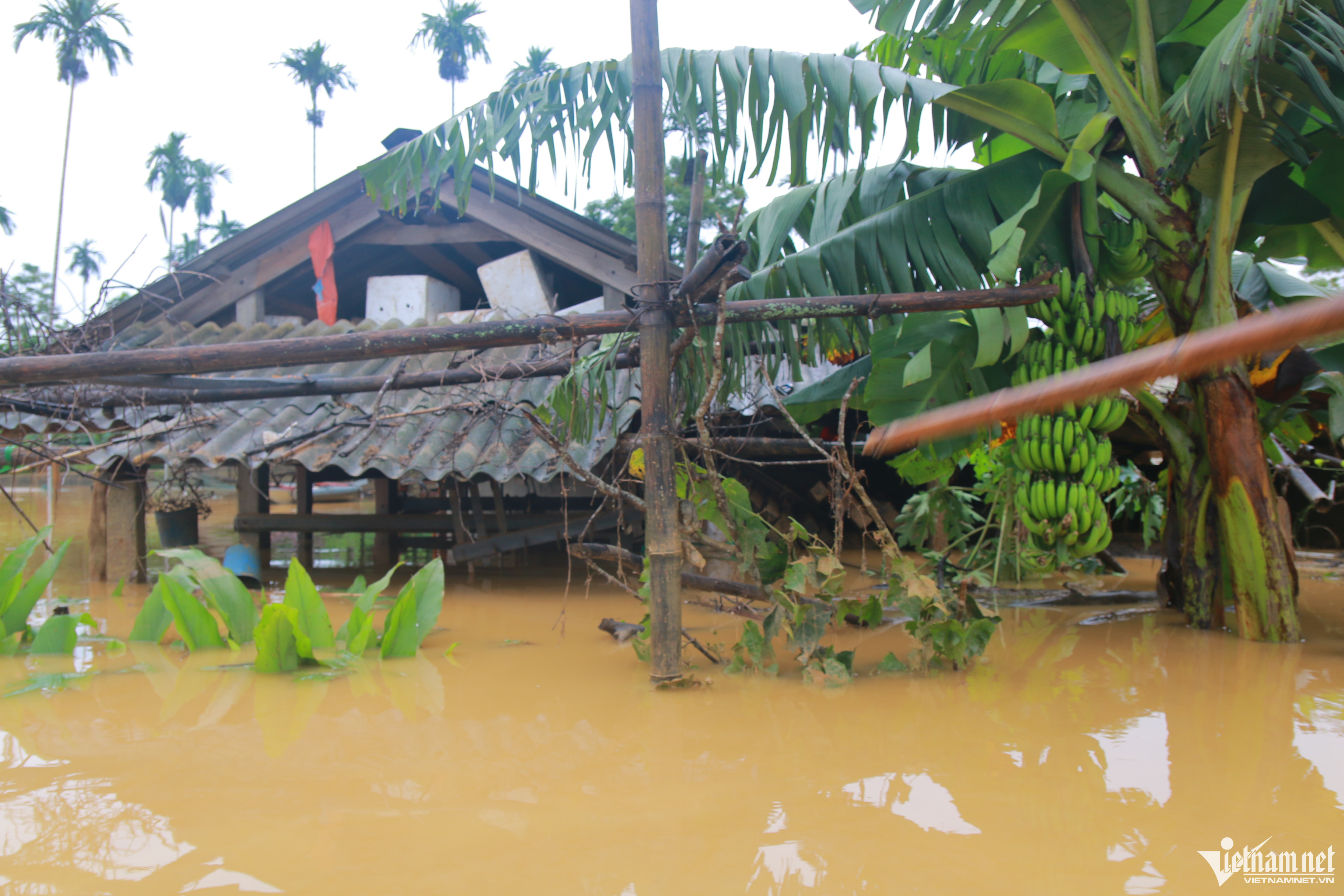 Nhìn căn nhà ngập sâu trong nước, anh Thái Doãn Liễu (SN 1979, trú xóm 7, xã Hạnh Lâm) chia sẻ: "Hôm qua nước lũ dâng lên rất nhanh, gia đình tôi chỉ kịp sơ tán một số đồ đạc đến nơi an toàn, còn hơn 3 tạ lúa vừa thu hoạch đã bị chìm trong nước".
