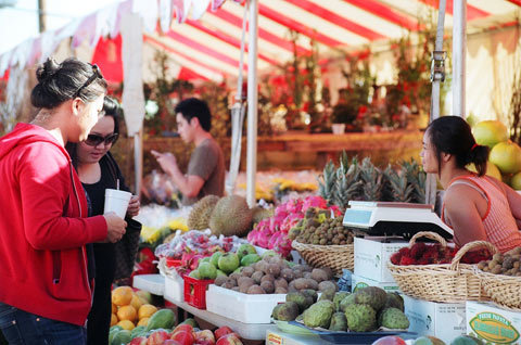 Hầu như tất cả các chợ trong vùng gần Little Saigon đều có gian hàng dành riêng cho Tết. Tại các quầy thâu ngân, người ta cũng thấy những thiệp xuân, bao lì xì, những lồng đèn đỏ, những phong pháo chưng Tết được bày bán hay treo khắp nơi.