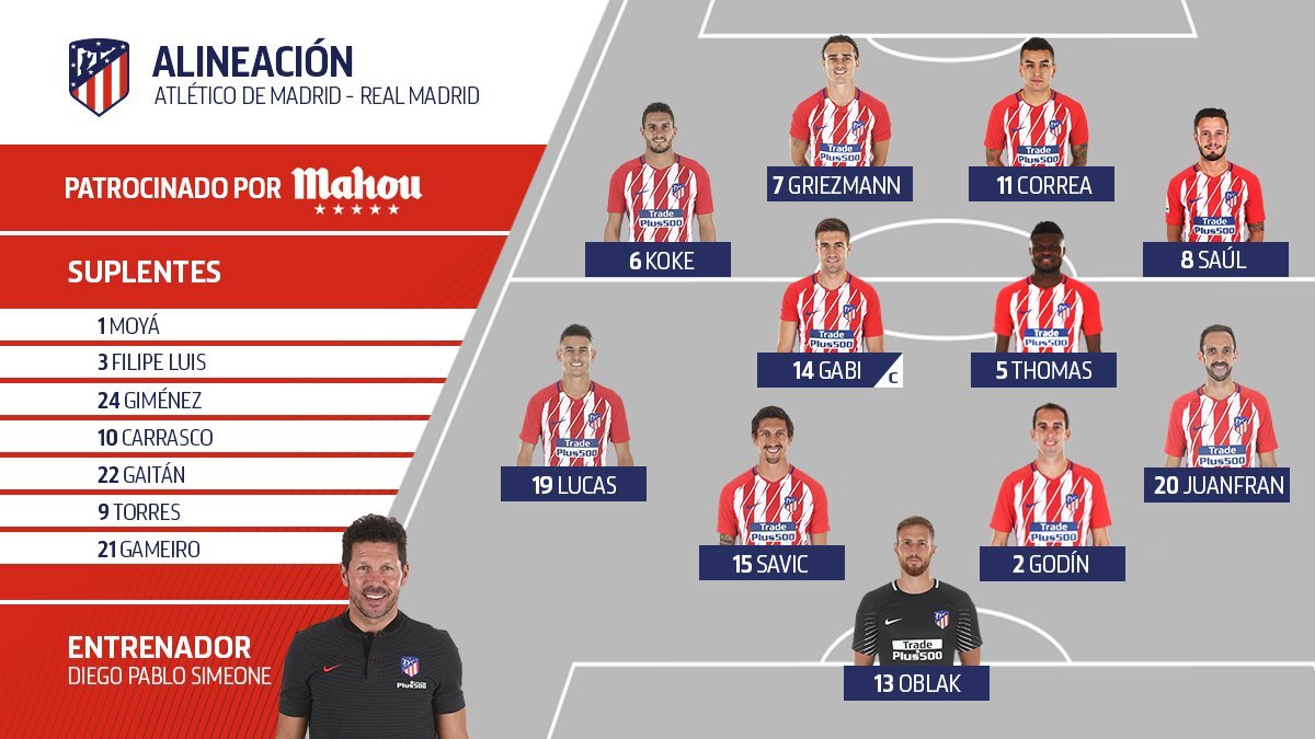 Atletico (4-4-2): Oblak - Juanfran, Savic, Godin, Filipe Luis - Koke, Gabi, Thomas, Saul - Correa, Griezmann.