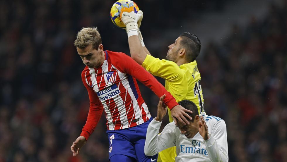 Không vào!!! Bóng đến chân Correa sau nỗ lực cản phá của Varane, nhưng ngôi sao trẻ người Argentina đá ra ngoài khi đối mặt thủ môn Casilla.