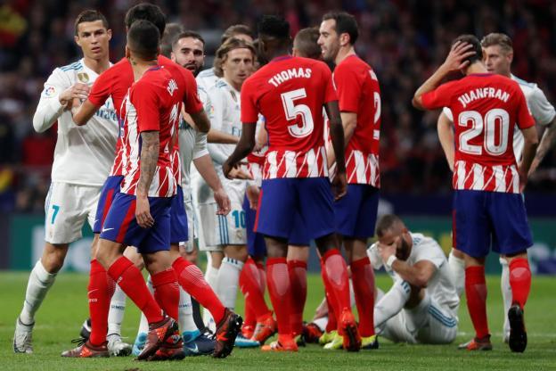Correa đá bóng vào Benzema khi đối thủ đã ngã. Cầu thủ hai đội lao vào nhau khá căng thẳng.
