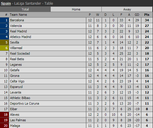 Cầm chân nhau 0-0, Real Madrid và Atletico đều có 24 điểm sau 12 vòng La Liga. Cả hai đang kém Barca đến 10 điểm.