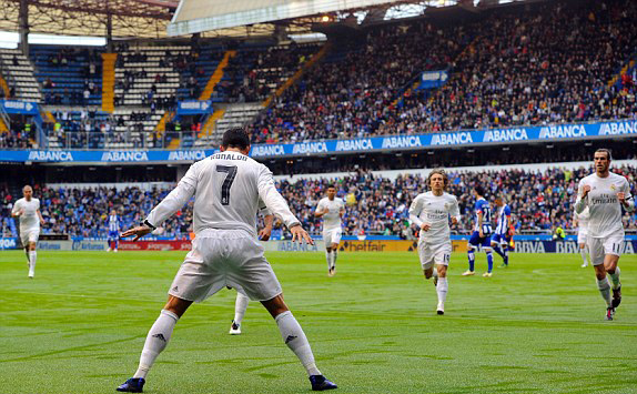 Đã có bàn thắng thứ 2 cho Real ở phút 25, và một lần nữa Ronaldo là người lập công. Từ pha phạt góc của Kroos, Ronaldo đánh đầu chạm hậu vệ chủ nhà, trước khi bóng vào lưới. Các cầu thủ Deportivo khiếu nại Real phạm lỗi, nhưng bàn thắng vẫn được công nhận.