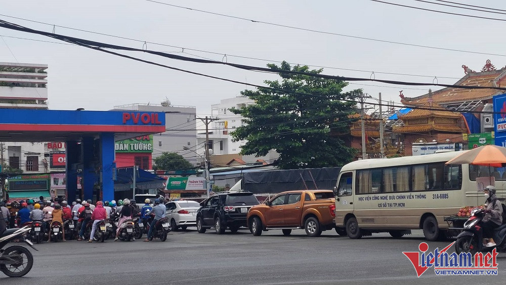 Tại một số cây xăng của Petrolimex, người dân chen chúc, xếp hàng rồng rắn để mua. Như cây xăng nằm trên đường Trường Chinh, Tây Thạnh (quận Tân Phú) hàng trăm xe máy xếp hàng kín trước cổng, khiến việc ra vào cây xăng rất khó khăn. Có người mang cả can dự trữ để bơm xăng.