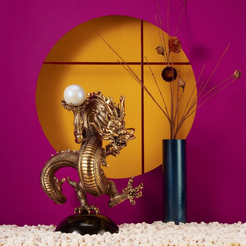 Tác phẩm được mạ vàng 24K ánh trên từng chiếc vảy rồng tựa như buổi bình minh tươi sáng. Viên long châu óng ánh trên tay đại diện cho trí tuệ, danh dự và sự trẻ hóa. Hoàng Long ứng với hành Thổ, được đặt ở vị trí chính giữa của Tứ Tượng.