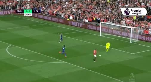 Gray thực hiện pha solo bên cánh trái rồi tung ra cú đại bác đưa bóng bay vào góc lưới xa khiến De Gea bó tay, gỡ lại một bàn cho Leicester.